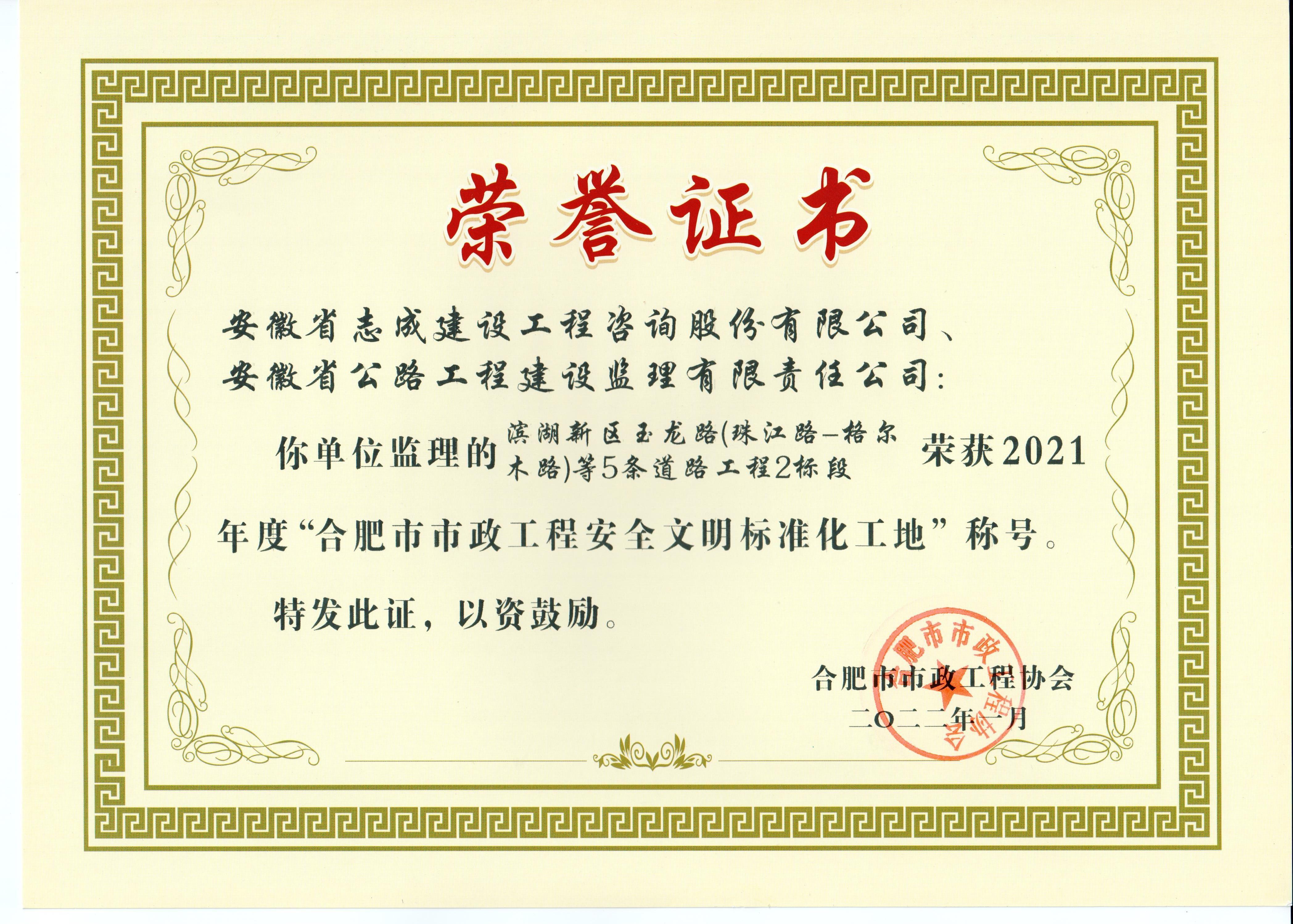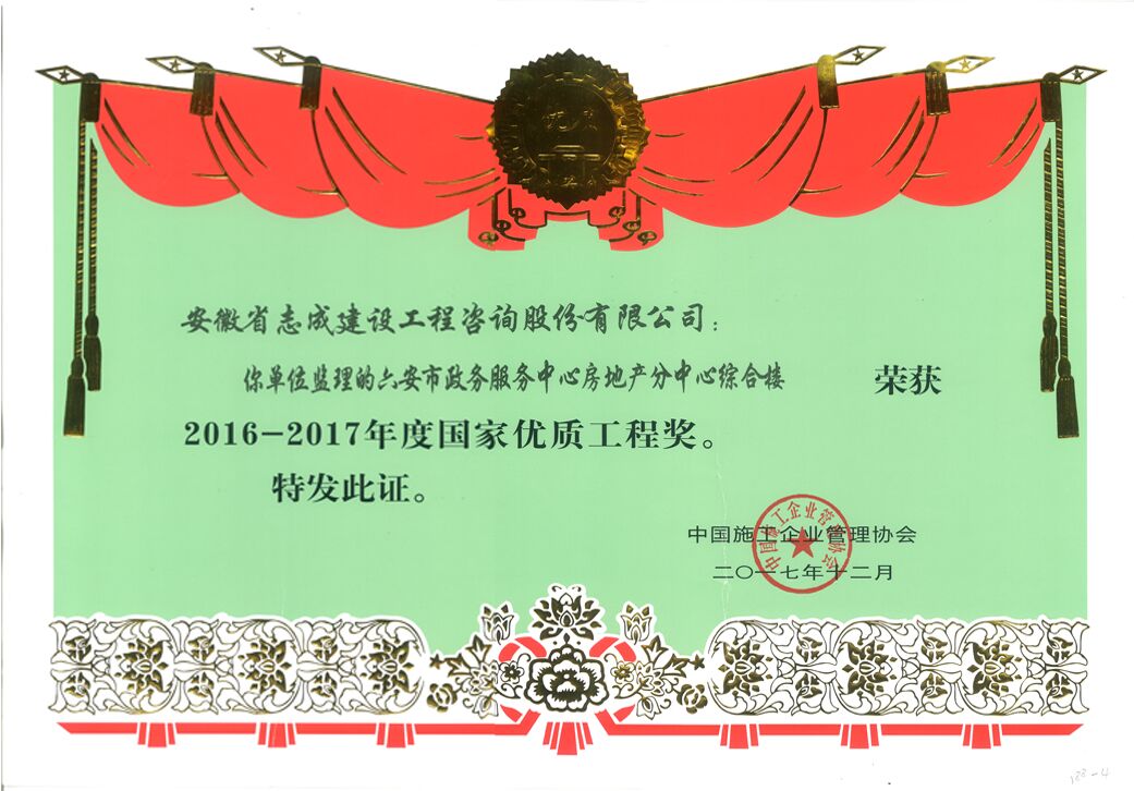 公司自2010年以來每年度均獲得行業(yè)優(yōu)秀企業(yè)稱號等多項榮譽,并獲安徽省監(jiān)理企業(yè)二十強稱號。